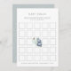 Diversão do bingo do chá de fraldas. Faz uma manga divertida para a mãe que espera. Apresentando um lindo elefante bebê a aquarela olhando para uma borboleta. O outro lado do cartão possui um padrão de vinha floral de cinza desenhada manualmente.