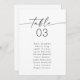 Este gráfico de números de tabela apresenta uma fonte de script manuscrito boho e design minimalista moderno. Altere facilmente o número e os nomes, juntamente com todas as cores, para corresponder totalmente ao seu evento.