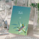 Numerar suas mesas de recepção com um cartão de mesa de recepção de libélula com joias. O design de placa de mesa apresenta uma libélula colorida que repousa sobre um trabalho de arte floral contra um fundo de gradiente teal. Material adicional disponível com esta design também. Precisa de ajuda para a personalização? Peço-lhe que me contacte e que elabore a redação e os pormenores para que este design seja ajustado para vossa satisfação.