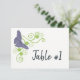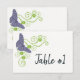 Numerar suas mesas de recepção com uma placa de mesa de Recepção Floral com Borboleta Púrpura. O design de placa de mesa apresenta uma borboleta roxa que repousa sobre um floral verde brilhante e floral. Material adicional disponível com esta design também.
