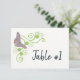Numerar suas mesas de recepção com uma placa de mesa de Recepção Floral da Borboleta Rosa. O design de placa de mesa apresenta uma borboleta cor-de-rosa que repousa sobre um floral verde brilhante e floral. Material adicional disponível com esta design também.