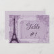 Numerar suas mesas de recepção com um cartão de mesa de recepção parisiense púrpura. O design de cartão de mesa apresenta a Torre Eiffel, um pergaminho onde você pode detalhar as informações do seu chá de panela enfeitiçado com embelezamentos de damasco e selo postal. Material adicional disponível com esta design também. Precisa de ajuda para a personalização? Peço-lhe que me contacte e que elabore a redação e os pormenores para que este design seja ajustado para vossa satisfação.