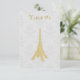 Numere suas mesas de recepção com uma placa de mesa de Recepção de Casamento tema damasco de Torre Eiffel Dourada. O design de placa de mesa apresenta a Torre Eiffel sobre um delicado fundo do local úmido. Material adicional disponível com esta design também.