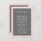 Cartões de plano de casamento elegantes e mínimos com espaço para até dez convidados em texto branco sobre um fundo de cinza com bordas cor-de-rosa pinceladas.