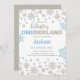 Celebre o primeiro aniversário do seu bebê com este elegante convite Blue & Silver Winter ONEderland! Projetado com flocos de neve cintilantes, tons azuis gelados e sotaques prateados imersos, é perfeito para uma celebração mágica de inverno. Totalmente personalizável com o nome, a idade, a data da festa e as informações de RSVP. Ideal para um primeiro aniversário elegante e memorável. Fácil de personalizar e impressão ou compartilhar digitalmente!