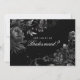 Introduzindo o eterno do nosso Classic Gótica Bridesmaid Proposta Card design, onde elegância encontra o etéreo. Um toque encantador de romance escuro adorava-se com intrincados motivos botânicos, com fundo preto embelezado com peonias luxuosas e rosas delicados que exaltam uma sofisticação temperamental perfeita para seu dia especial. Oferecendo uma estética de opulência gótica com contraste de elementos florais negros e brancos contra o escuro profundo, com a caligrafia formal branca emparelhada com sofisticada serifa para criar um estilo equilibrado e versátil especialmente perfeito para o outono e casamentos no inverno, mas igualmente adequado para um misterioso primavera ou evento de verão. Tal como acontece com todos os nossos designs, se têm pedidos especiais de coordenação de produtos, por favor não hesitem em chegar até nós. Adoraríamos ajudá-lo a capturar a sua história de amor gótico romântico perfeita.