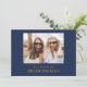 Este clássico cartão de marinho em ouro, foto-bridesmaid, é excelente de um simples casamento romântico e elegante. A paleta de cor azul-marinho escura e a tipografia mínima de vintage lhe dão um toque formal clássico. O design é flexível, perfeito para uma noite contemporânea básica, primavera, outono, verão ou casamento no inverno. Mantenha-o como está ou escolha personalizá-lo com trabalho de arte ou gráficos de sua escolha.
