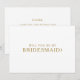 Este clássico cartão de proposta de dama de honra minimalista é excelente de um casamento simples e elegante. A tipografia dourada dá-lhe um toque formal clássico. Mantenha-o como está ou escolha personalizá-lo com trabalho de arte ou gráficos de sua escolha.
