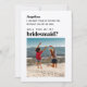 O clássico modelo de cartão de posto de madrinha de casamento de de casamento apresenta um design fabuloso na frente, e uma mensagem personalizável e sua própria foto. Você pode personalizá-lo com o botão personalizar. Envie sua mensagem de proposta como recém-comprometida para seus amigos e família usando este cartão postal de proposta de casamento maravilhoso e simples com as palavras.