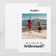O clássico modelo de cartão de posto de madrinha de casamento de de casamento apresenta um design fabuloso na frente, e uma mensagem personalizável e sua própria foto. Você pode personalizá-lo com o botão personalizar. Envie sua mensagem de proposta como recém-comprometida para seus amigos e família usando este cartão postal de proposta de casamento maravilhoso e simples com as palavras.