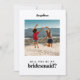 O clássico modelo de cartão de posto de madrinha de casamento de de casamento apresenta um design fabuloso na frente, e uma mensagem personalizável e sua própria foto. Você pode personalizá-lo com o botão personalizar. Envie sua mensagem de proposta como recém-comprometida para seus amigos e família usando este cartão postal de proposta de casamento maravilhoso e simples com as palavras.