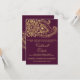 Este cartão de recepção de casamento paisley de ouro índio é perfeito para um casamento elegante. O design mehndi apresenta um adorável hena mandala floral e motif paisley em um fundo burgundy. Personalize este cartão de recinto detalhado com as informações de recepção e inclua também o endereço do seu site de casamento! Nota: Este design não apresenta folha de ouro real. É um gráfico de alta qualidade feito para se parecer com folhas de ouro.
