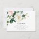 Um convite clássico para o casamento floral na cor de água pastel, enquadrado por um buquê de flores pintadas em rosa suave, branco e sábio. Os detalhes do seu casamento são destacados com todas as letras negras.