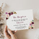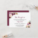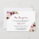 Este cartão de recepção de casamento floral vermelho e borrado verde é perfeito para um casamento rústico. A design apresenta buquês de flores elegantes, verdes, esbranquiçados, roxos, vermelhos e burgosos desenhados à mão, inspiradoras belezas naturais.