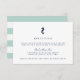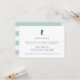 Projetado para coordenar com as nossas coleções de convites para o casamento da Náutica Mix, este cartão de recepção de casamento cônica costeira em menta e marinho apresenta uma pequena ilustração do cavalo marinho no topo com uma elegante inscrição azul marinho e um fundo verde e branco com faixa horizontal. Adicione os detalhes da recepção, como horário, local e endereço, usando os campos fornecidos.