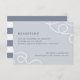 A placa Elegante de recepção de casamento costeira apresenta os detalhes de sua recepção em um fundo azul de cinza pálida, acentuado nos cantos com laços de corda náutica trançada. Cartões à volta de faixas náuticas largas.