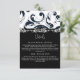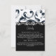 Resposta RSVP de Monograma para Damasco Floral Branco e Preto Elegante com Opções de Menu. Perfeito para os Temas do Renascimento Medieval, Vitoriano ou Casamento Grego