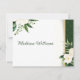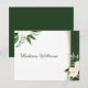 Um arranjo requintado de flores brancas, complementado por um verde-luxuoso, é graciosamente acentuado com uma faixa de gradiente de ouro e reforçado por um damasco verde no lado direito