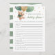 Adquira este cartão editável e desfrute de um jogo de frases de alta qualidade que pode terminar o jogo de Pai para o seu evento! Este é um modelo de cartão, Você pode personalizar o cartão, mudar o texto como quiser! Sage Green e Dourados Balões Urso de Teddy. Atividades de chá de fraldas! Adivinha o jogo.
