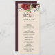 Este cartão de cardápio de janto floral de marinho burgundy moderno é perfeito para um casamento simples. A design apresenta flores vermelhas, burladas, marinhos, roxas, azuis e esbranquiçadas lindamente pintadas à mão e folhas verdes. Este menu pode ser usado para recepção de casamento, janto de ensaio, chá de panela ou qualquer evento.