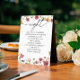 Esta Placa Floral Sentada é a combinação perfeita de elegância e funcionalidade para casamentos, recepções e eventos formais. Apresentando um tema floral maravilhosamente projetado, este gráfico de assentos ajuda a guiar seus convidados sem esforço e, ao mesmo tempo, adiciona um toque sofisticado à sua decoração.