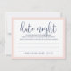 Deixem os chás de panela compartilharem suas ideias noturnas favoritas para o casal feliz, com esses cartões doces. O pastel chic, cor-de-rosa-claro e design de marinho, apresenta a "noite da data" em letras modernas de escrita de caligrafia e um poema curto que instrui os hóspedes sobre o que fazer. Personalize com o nome e a data do chá da noiva e coloque uma pilha na entrada do evento, passe-as ou deixe uma em cada lugar. Faz uma bela manutenção para a noiva, e um alternativo excelente para o pote noturno da noite!