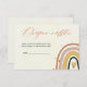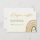 Cartão de rifa de fralda com arco-íris, texto de caligrafia e corações dourados.