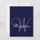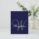 Cartão de recepção para convites com monograma. Uma elegante cor azul de fundo marinho com uma cinza inicial em uma fonte elegante de script. Design por Elke Clarke©. Personalize com seu monograma e informações pessoais e as cores do casamento selecionando a opção "personalizá-lo". Um design versátil, perfeito para criar seus cartões de recepção exclusivos com a combinação de cores e o monograma inicial.