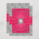 Este cartão floral RSVP cor-de-rosa quente e prata FAUX (efeitos impressos) com uma fuchsia IMPRESSA SOBRE fita e falso gravado, parece medalhão de prata, corresponde ao convite de casamento de primavera ou verão mostrado abaixo. Todo o texto é personalizável, assim como a escolha do papel. Se você precisar de assistência para personalizar este cartão ou se você precisar de outros itens correspondentes neste mesmo design, envie seu pedido por e-mail para niteowlstudio@gmail.com.