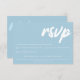 Este é um cartão RSVP de Casamento Moderno e Azul com modelo de escolha de refeição, que será excelente para qualquer Casamento. Este cartão de resposta é de dupla face e tem monogramas e um site de casamento (opcional) na parte de trás. Todo texto é editável, basta clicar em 'Personalizar este modelo'. Você também pode alterar a cor de fundo, basta clicar em "Personalizar mais".
