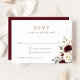 Placa RSVP de Casamento Branca de Borgonha Floral. Cartão de Resposta de Casamento de Merlot Floral Branco Elegante