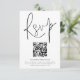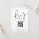 Placa RSVP de Casamento de Script de Código QR Minimalista. Um gabinete de opções conveniente para pedir aos seus convidados que digitalizem o seu código QR para o seu site de casamento para RSVP. Uma tipografia de na moda set em preto para o título principal RSVP complementando o resto do texto que você pode personalizar facilmente.
