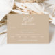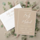 Nossa elegante carta de resposta RSVP de casamento de caligrafia branca e esticada é um companheiro perfeito para sua papelaria de casamento minimalista. Uma bela combinação de caligrafia branca com fontes modernas em um fundo macio mocha-taupe faz com que um olhar elegante reflita a celebração da sua na moda. Rápido e simples para você personalizar diretamente no Zazzle com seus próprios nomes e detalhes de casamento, e depois escolher que seus convites sejam impressos, baixados digitalmente ou ambos!