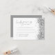 Este cartão RSVP de casamento falso sequências de prata e uma combinação de fontes de cinza de vidro. Use esta modelo para editar o texto *mais*, a fonte, a cor da fonte e a cor do plano de fundo para corresponder ao seu estilo de evento.