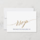 Esta elegante placa RSVP de opções de menu azul de ouro e marinho é perfeita para um casamento simples. A design neutra apresenta uma carta minimalista decorada com a tipografia falsa de ouro romântica e caprichosa. Este cartão de resposta do casamento convenientemente pergunta aos hóspedes qual refeição eles gostariam na sua recepção. Nota: Este design não apresenta folha de ouro real. É um gráfico de alta qualidade feito para se parecer com folhas de ouro.