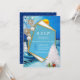 Uma cena de Natal de inverno Azul com uma estrutura de ouro geométrico é fácil de personalizar com sua redação, fonte, cor da fonte, forma de papel e escolha de doze tipos de papel.