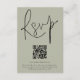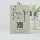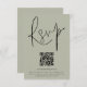 Código QR moderno Script de Casamento de Sage Verde de Casamento Suave RSVP Verde. Um gabinete de opções conveniente para pedir aos seus convidados que digitalizem o seu código QR para o seu site de casamento para RSVP. Uma tipografia de na moda set em preto para o título principal RSVP complementando o resto do texto que você pode personalizar facilmente. Seu código QR será gerado automaticamente para atualizar o código de amostra no design, quando você simplesmente alterar o URL de amostra no modelo com o URL do seu próprio site de casamento.
