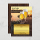 Cartão RSVP com um pôr do sol num lago com óculos de cerveja num jato. Este cartão RSVP combina com convites de casamento e é bonito para um tema cervejeiro, cervejaria, casamento ao ar livre ou outra celebração.