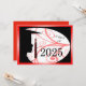 Uma silhueta de um jovem em seu boné e vestido. Designs florais no fundo. O fundo tem um fundo vermelho com letras negras para os anúncios de graduação.