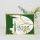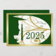 Uma silhueta de uma moça no boné e no vestido. Designs florais são usadas em segundo plano. O fundo tem um fundo verde com letras douradas para os anúncios de graduação.