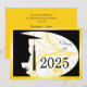Uma silhueta de uma moça no boné e no vestido. Designs florais são usadas em segundo plano. O fundo tem um fundo amarelo com letras negras para os anúncios de graduação.
