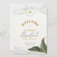 Placa Tabletop de Boas-vindas do Chá de panela de Aquarela Dourada Elegante Greenery. Este belo cartão de mesa é a maneira perfeita de dar aos seus convidados uma calorosa e pessoal recepção. Projetado para ajustado perfeito em suportes de placa ou clipe (não incluído), seu design de lado duplo apresenta uma imagem espelhada na parte traseira. Isso garante uma exibição sem falhas de qualquer ângulo, fazer-a de uma peça verdadeiramente completa e elegante. A carta é lindamente personalizada com uma contagem final até o grande dia, em um estilo único no topo. Abaixo, um corajoso e elegante "BEM-VINDO" cumprimenta seus convidados, seguido do nome da noiva-a-ser, "Chá de panela" em tipografia elegante, a data e o local ou local. Tudo isso é colocado contra o impressionante design de água e verde-coloração e ouro da coleção. Esta carta elegante serve como uma bela peça de decoração e uma saudação clara e pessoal, assegurando que cada detalhe da sua celebração seja sofisticado e sem esforço.