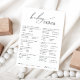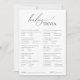 RESPOSTAS: <1 c) 3.000 <2 b) 6-7 meses <3 a) 5% <4 c) 300 <5. b) Dada <6. c) 14-17 horas <7. d) Cheiro <8. b) Meconium <9. d) 22 lb <10. b) 9-12 meses. Apresentando nossa placa de trivia chá de fraldas neutra, perfeita para qualquer estação, seja outono, inverno, primavera ou verão! Este cartão de jogo tem uma vibração boho-chic com caligrafia moderna e elegante e um design preto-e-branco minimalista. É bonito e único, com um toque de chique antigo, fazer perfeito para ambos os rapazes e raparigas. Além disso, é editável, então você pode adicionar seu próprio toque clássico e caprichoso para criar uma papelaria personalizada verdadeiramente bonita e delicada para seu evento. Por favor, sinta-se à vontade para responder a quaisquer perguntas sobre a design do produto; estamos felizes em ajudar!