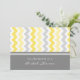 Convites de chá de panela em elegante amarelo-limão brilhante, cinza e retrô branco e padrão de listras de chevron casual, chic e feminino, personalizáveis com seus detalhes de chá. Também disponível em cartões de agradecimento e convites para a festa noiva.