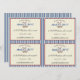 Quatro cartões de informação DIY projetados em um convite de 5,5" x 7,5" precisarão ser cortados à mão individualmente. Este design de quatro placas pode exigir um pouco de trabalho extra, mas o benefício para isso em uma inserção de cartões de visitas gordinha é a opção de solicitar no mesmo estoque de papel que o seu convite de correspondência.