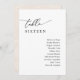 Projetado para coordenar com a nossa coleção de casamento do Roteiro Romântico, este cartão do Gráfico de Assentos, apresenta um texto de escrita de caligrafia abrangente, emparelhado com uma fonte de serifa & moderna em preto e com uma cor de borra suja. O texto e o plano de fundo podem ser alterados para qualquer cor para corresponder ao seu tema. Para fazer alterações avançadas, vá para a opção "Clique para personalizar mais" em Personalizar este modelo.