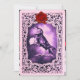 Design de monograma elegante e clássico Vintage em cores violetas roxas cor-de-rosa, espirais florais com um corvo engraçado jogando pôquer,