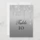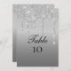 Cartões de números da Tabela de Casamento com brilho de cor prateada.