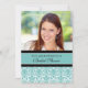 Chá de panela personalizado de convites para modelos de fotos em azul-turquesa elegante, cor damasco floral clássica preto-e-branco, elegante e feminino, personalizável com seus detalhes de chá. Também disponível em cartões de agradecimento e convites para a festa noiva.