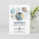 Celebre o marco especial do seu filho com este convite de aniversário de tema do espaço sideral mágico. Apresentando planetas imaginários, luas e estrelas em marinho e mira dourada.